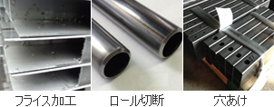 内外面取り、バリ取り、ロール切断、スエッジ加工、塗装、鍍金、レーザー加工、鋼材の切売、フライス加工、穴あけなどにも柔軟に対応しております。